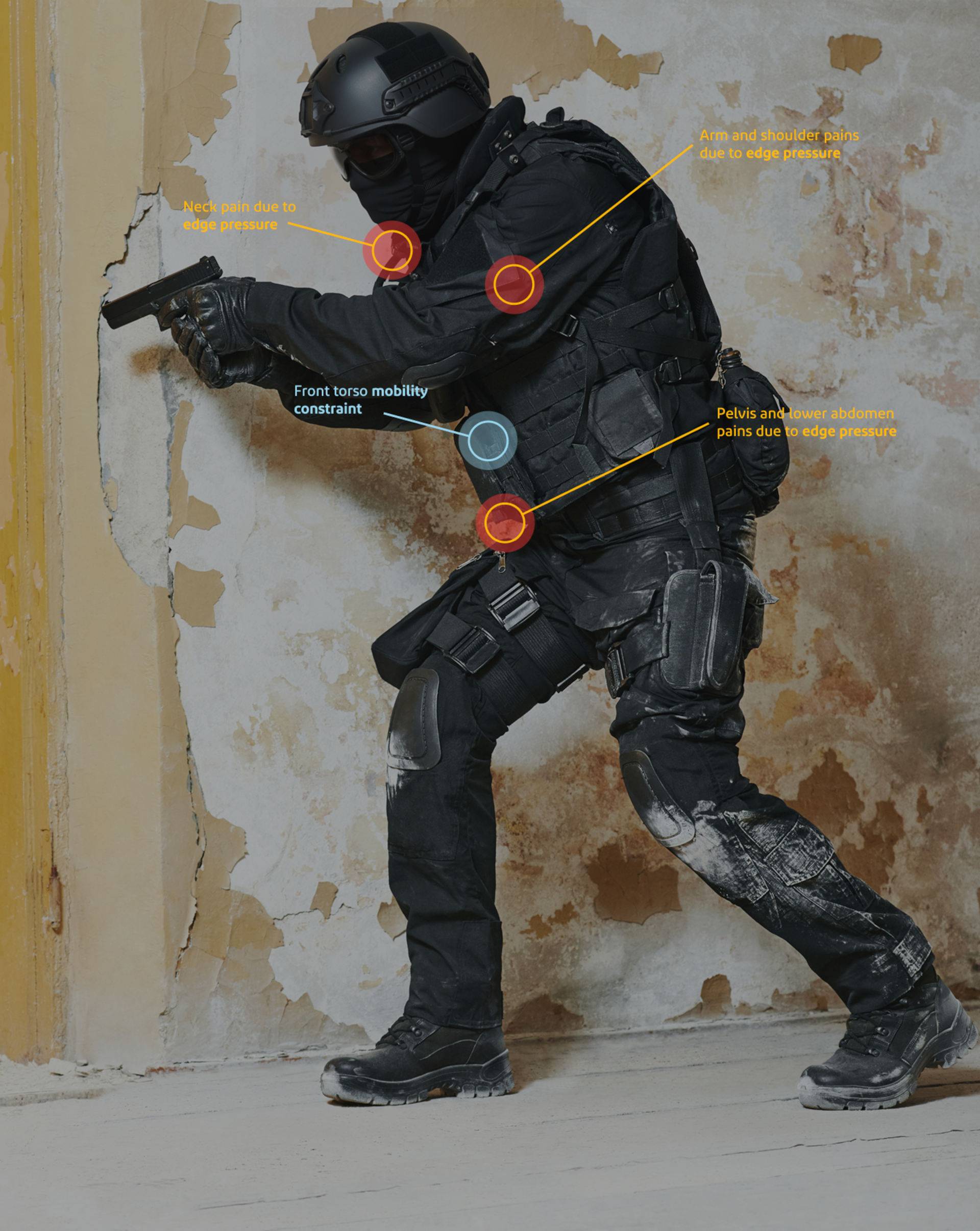 Discomfort and restricted mobility can cause wearers to adjust or remove armor too soon, leaving them vulnerable. Fatigue and strain weaken focus, slow reactions and raise the risk of injury.